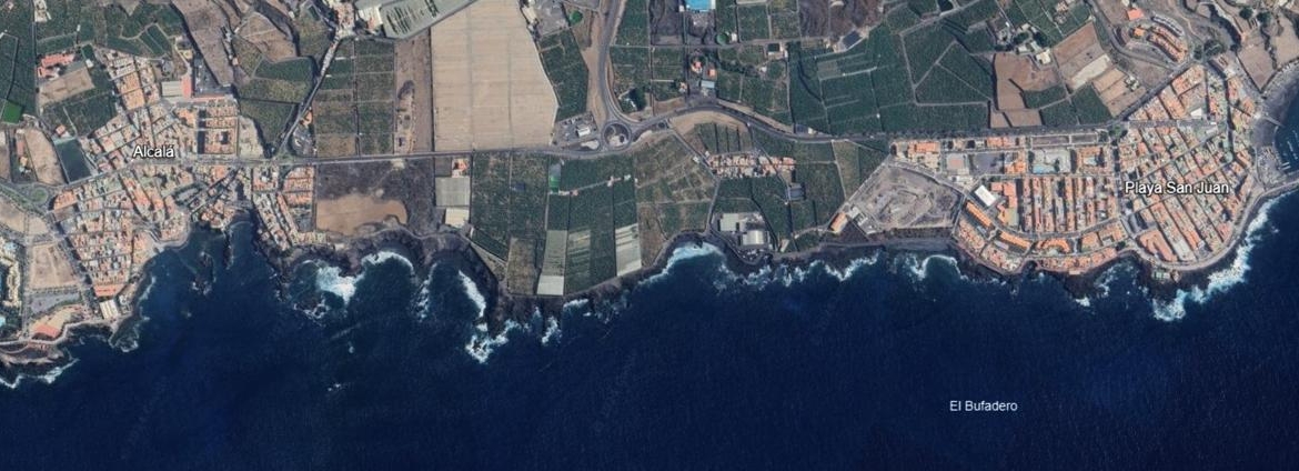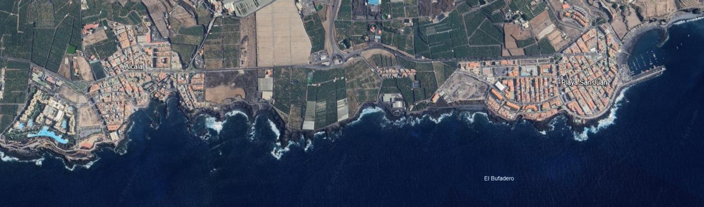 Muy buena ubicación, primera línea de mar, entre las poblaciones de Alcalá y Playa de San Juan, a escasa distancia de la conexión de autovía a la autopista TF-1 (sur de Tenerife) y cercanía a las cooperativas de la zona.