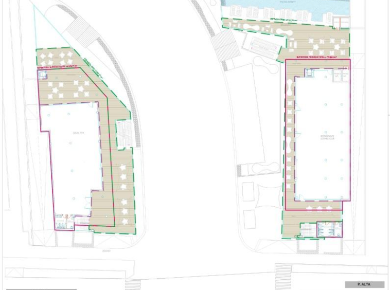 4)Planta alta: Perfecta zona destinada al ocio, restaurantes, beachclub- lounge bar con piscina de 30 m.