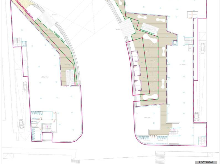 1)Planta Sótano: -1 parking + almacenes.